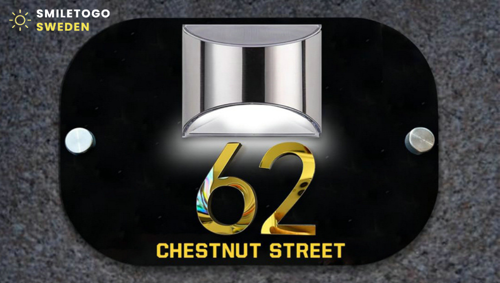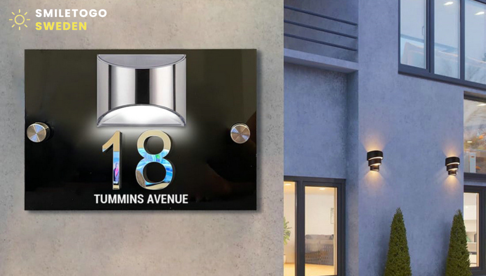 Personifierad LED 3D solcellsbaserad husnummerrektangel